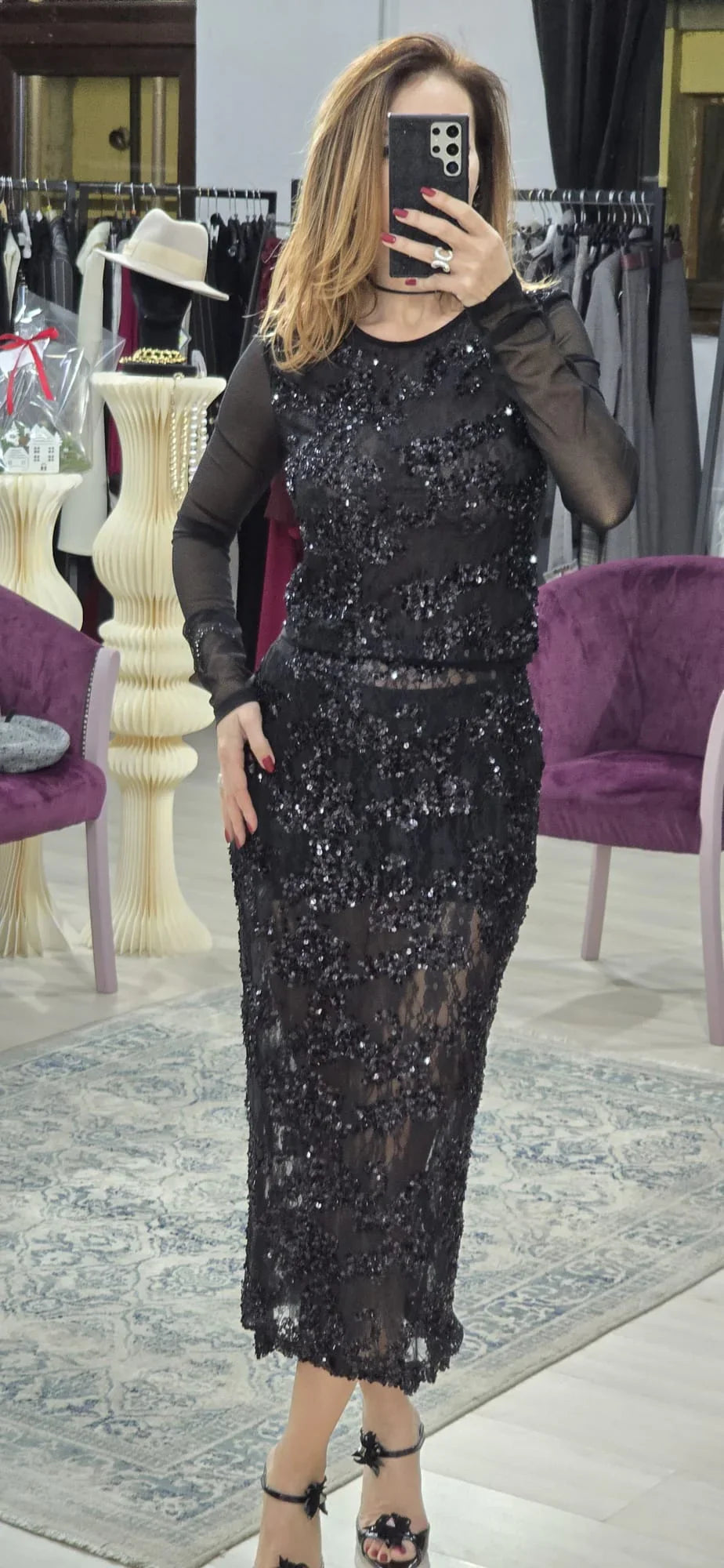 Bluza dama realizata din material rafinat cu paiete fine, ce capteaza lumina la fiecare miscare. Textura stralucitoare a paietelor adauga un plus de glamour, transformand aceasta bluza intr-o alegere ideala pentru evenimente speciale, petreceri sau aparitii de seara memorabile.