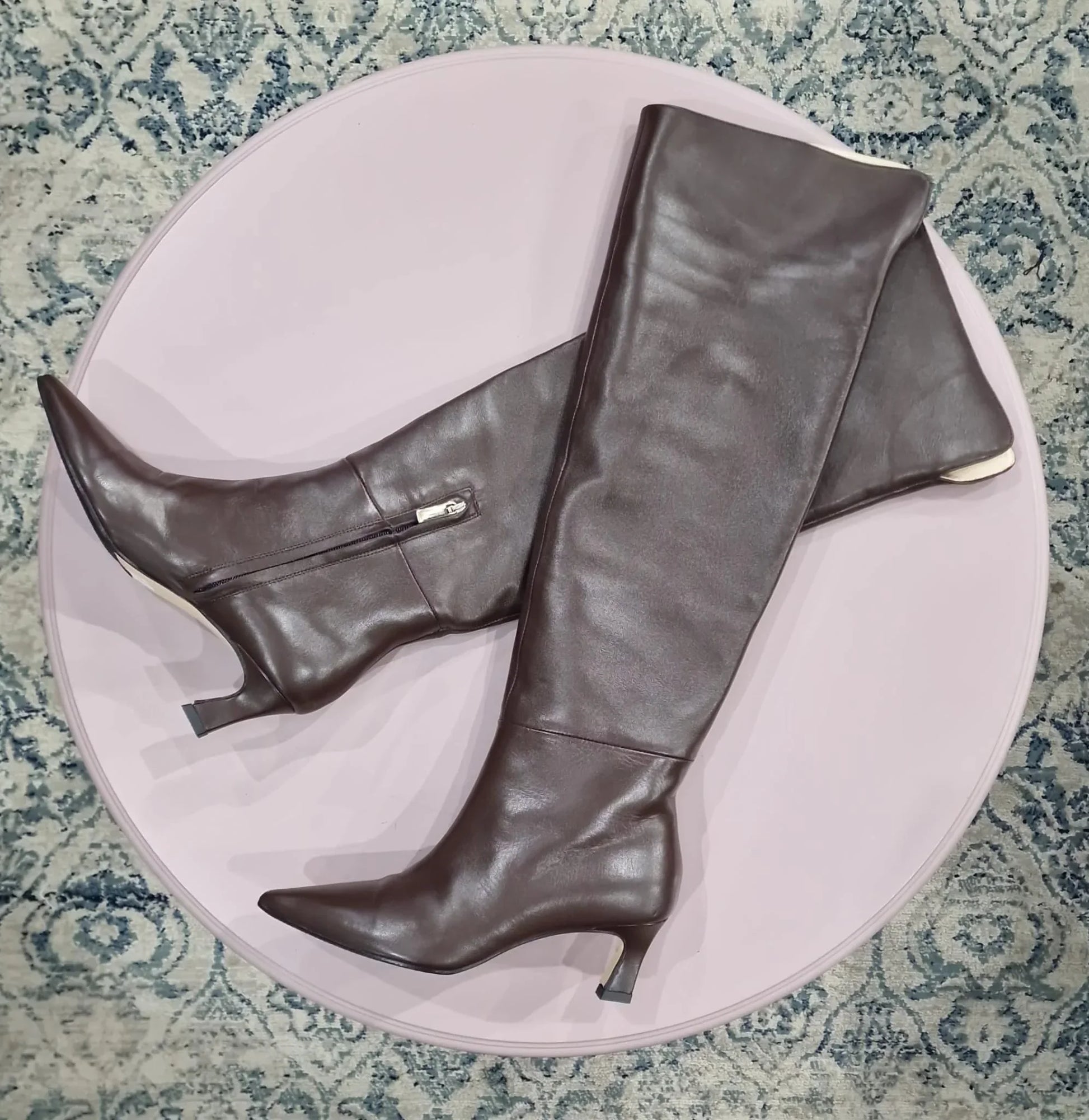 Tocul de 6 cm conferă feminitate și stabilitate, iar înălțimea carambului de 50 cm asigură o siluetă armonioasă și o potrivire confortabilă. Aceste cizme din piele maro sunt ideale pentru ținute casual, office sau elegante, completând garderoba feminină cu o piesă versatilă și stilată.