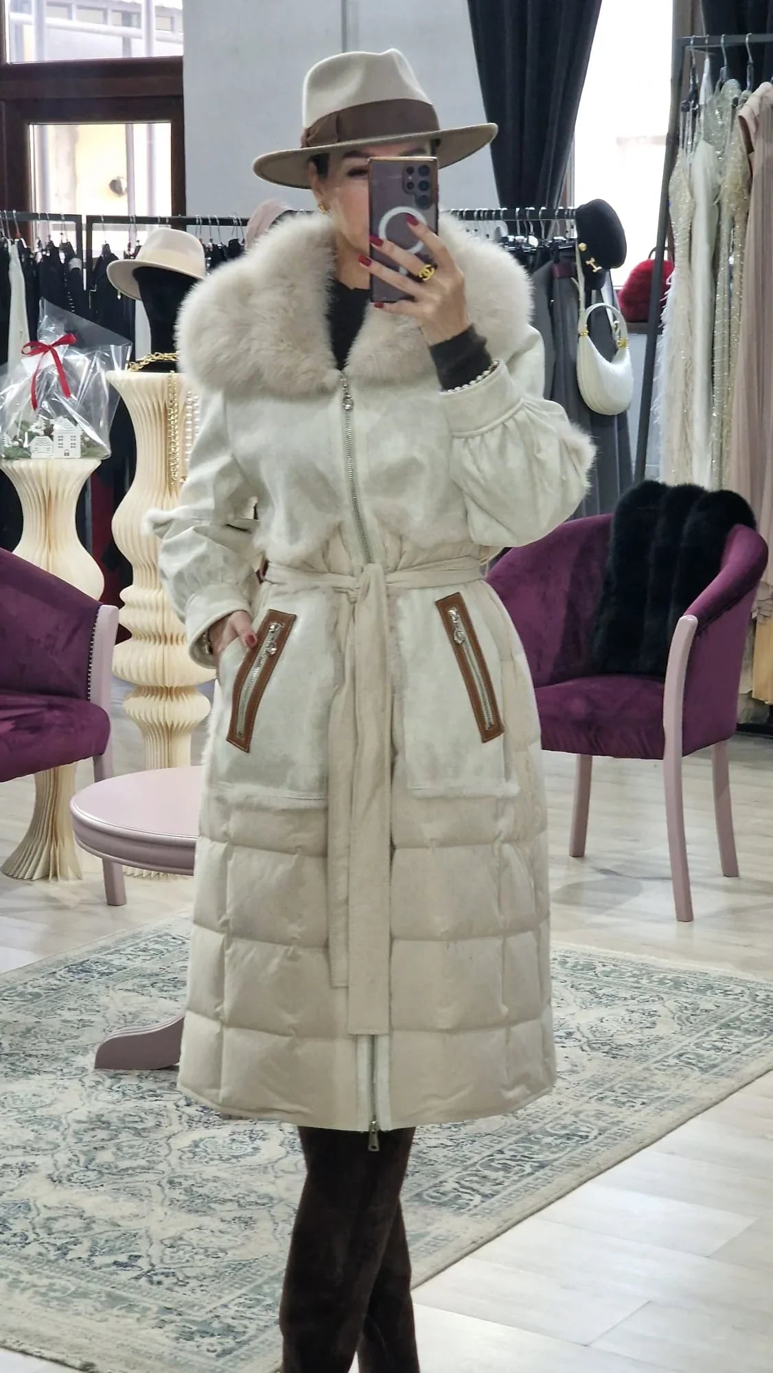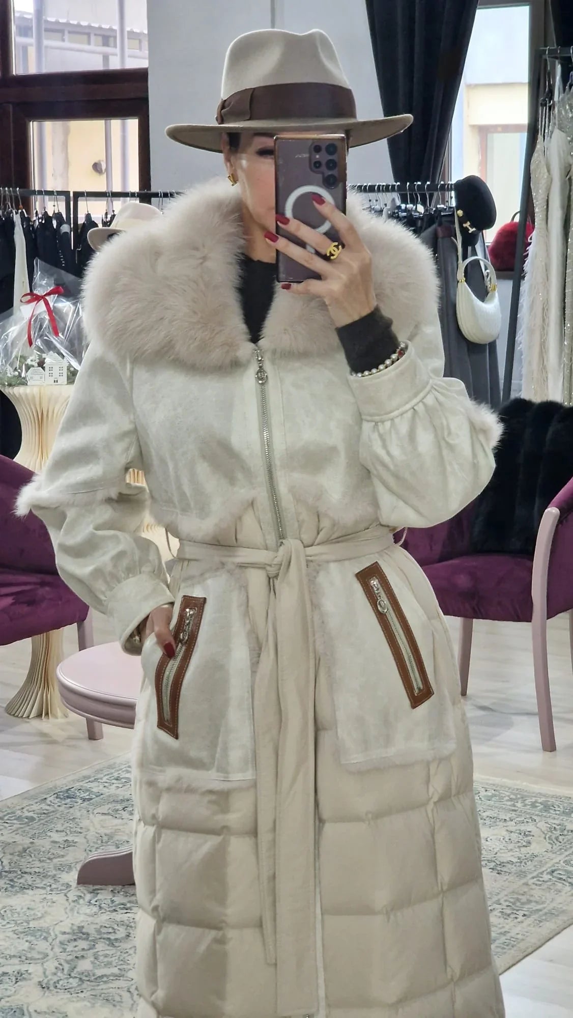 Această geacă damă tip cojoc matlasat combină eleganța și funcționalitatea, având un guler din blană naturală detașabil care oferă căldură și un plus de rafinament. Designul matlasat conferă volum optim și confort termic, fiind ideală pentru sezonul rece.